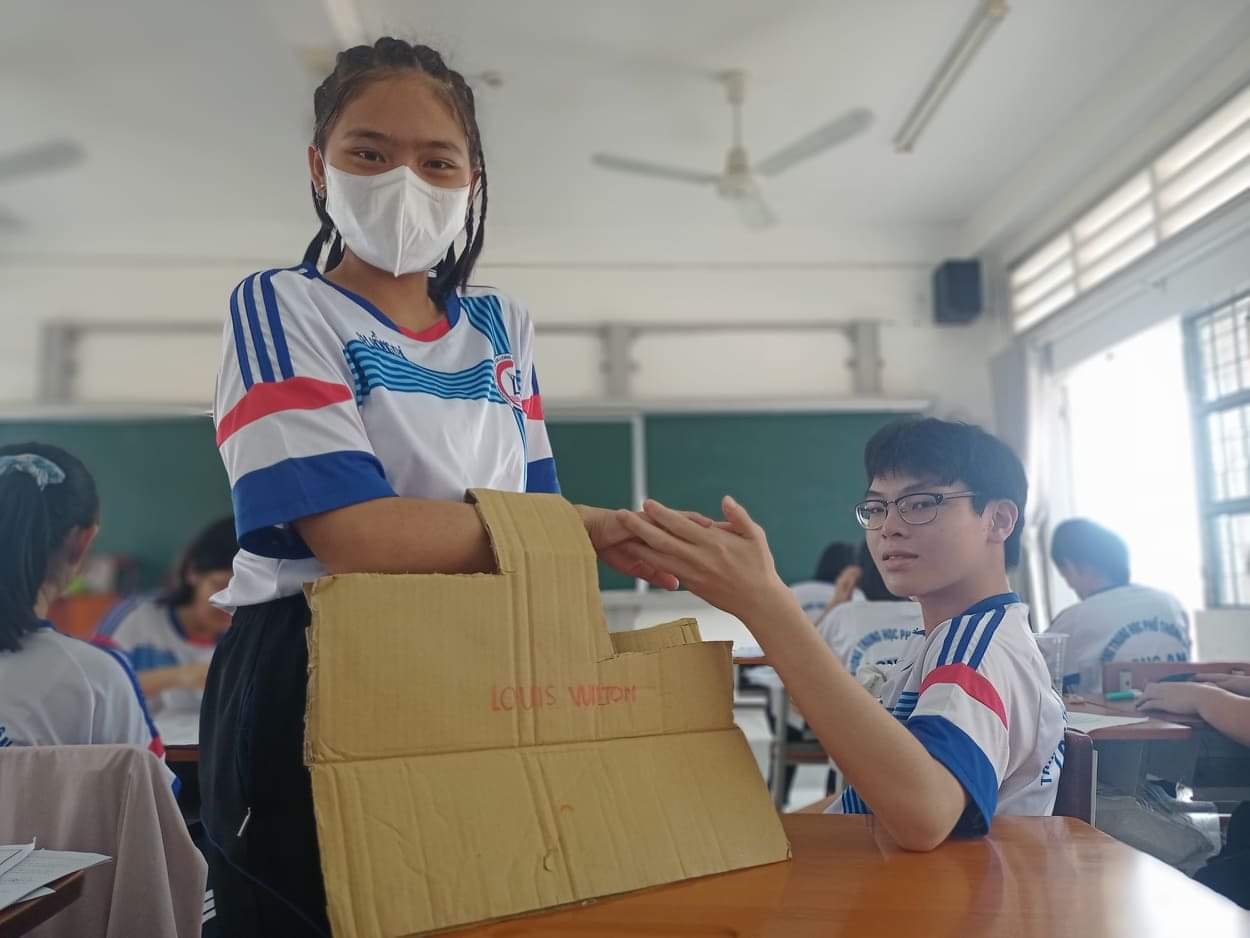 Louis Vulton có lẽ đã trở thành một nhãn hiệu thời trang quen thuộc đối với mọi người, từ quần áo đến các phụ kiện. Tuy nhiên, ít ai lại có thể có được trang phục của Louis Vulton, bởi vì giá của nó khá là mắc. Để đáp ứng nh7 cầu trưng diện, nhà Sinh chúng tớ đã chế ra một cái túi Louis V “fake” chính hiệu, làm hoàn toàn bằng bìa “carton”. Hãy xem người mẫu Sinh Chuyên trình diễn như thế nào nha….